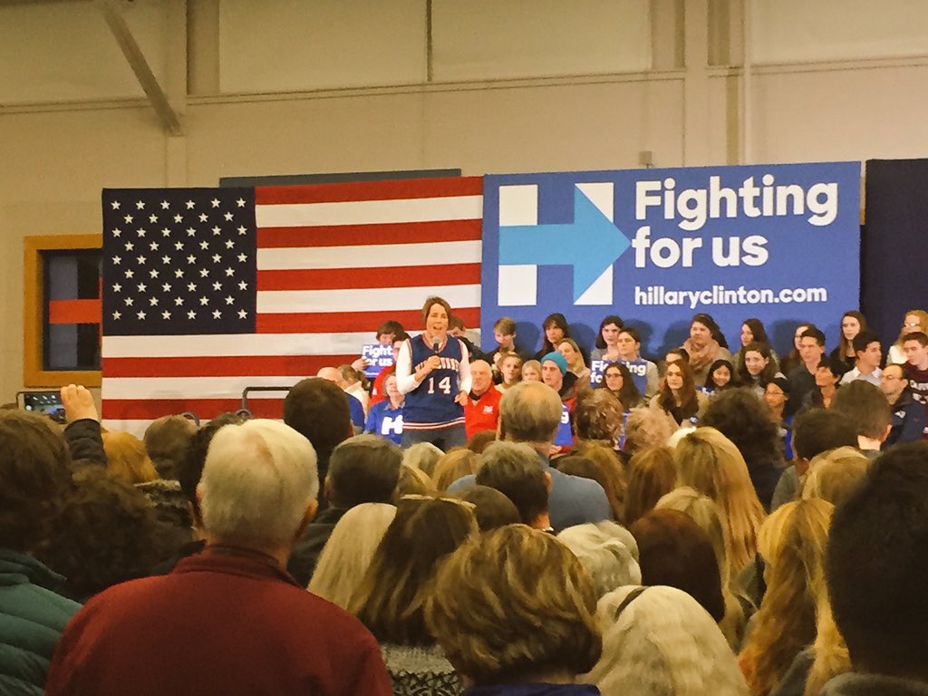 Mass AG @maura_healey & Winnacunnet alum brings out her old bball jersey all in the name of @HillaryClinton 🏀🏀🏀