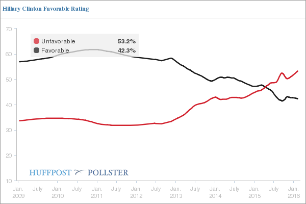 (22,308 posts)and the more voters see of Hillary, the less electable she becomes.