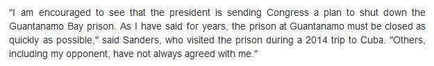 @BernieSanders welcomes plan to close Guantanamo: "Others, including my opponent, have not always agreed with me."