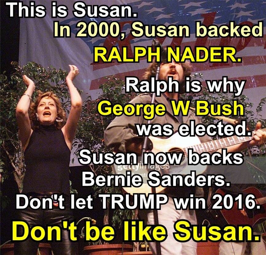 So seriously, you want to throw Florida 2000 at the feet of Susan Sarandon and Ralph Nader?