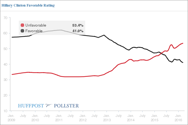 Clinton's favorability - now here is something that seems to be steadily dropping off: