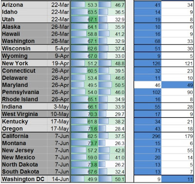 Illinois: Benchmark 69, Bernie has 70, 13 unallocated.