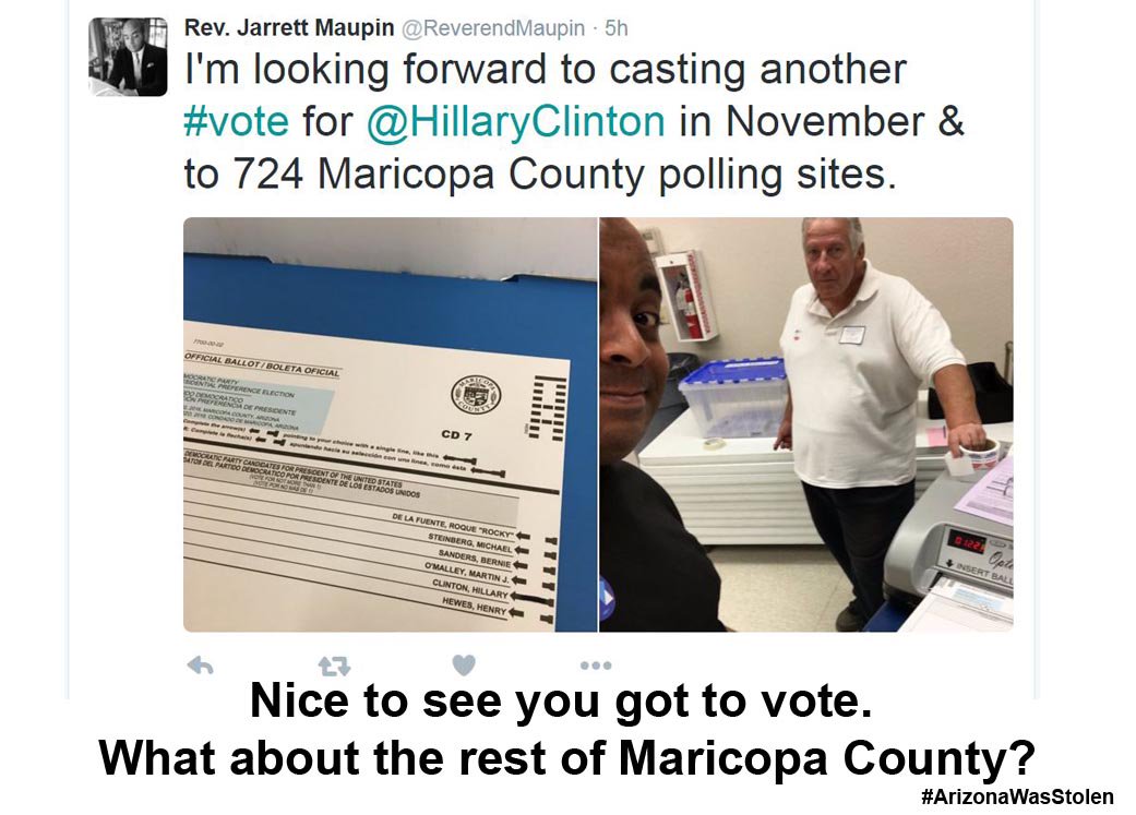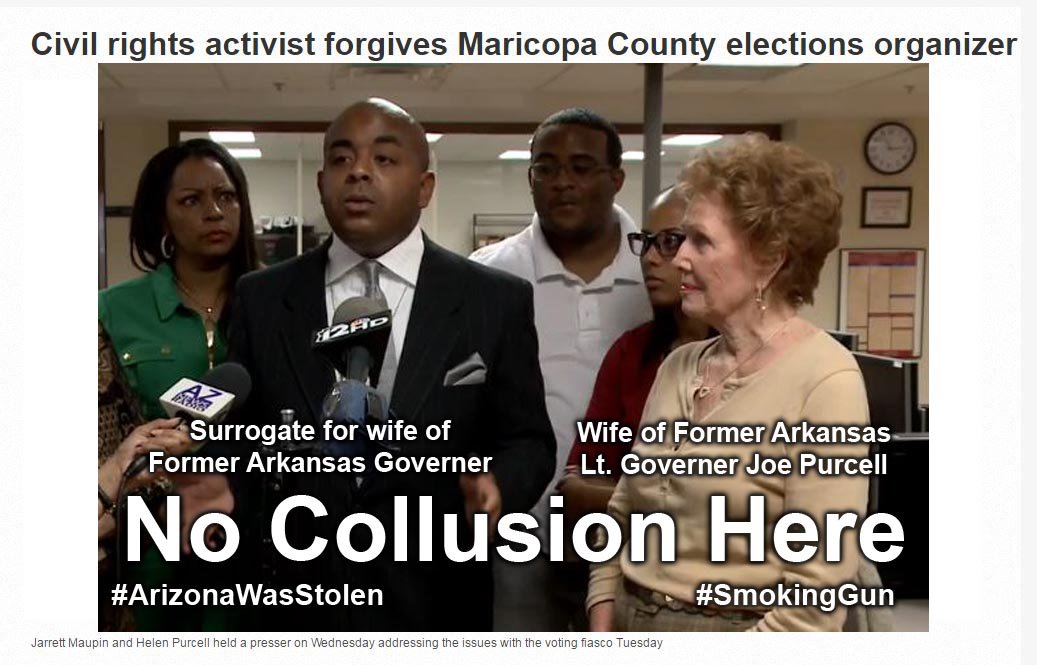 Related: About this forumBIG UPDATE: Clinton Surrogate Jarrett Maupin comes to rescue of Maricopa Co.Recorder Helen Purcell