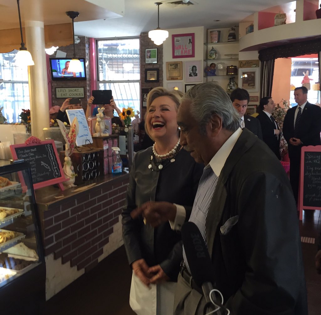 Hillary Clinton (earlier) at a Harlem cake shop: "Its a #joy to be campaigning in New York"