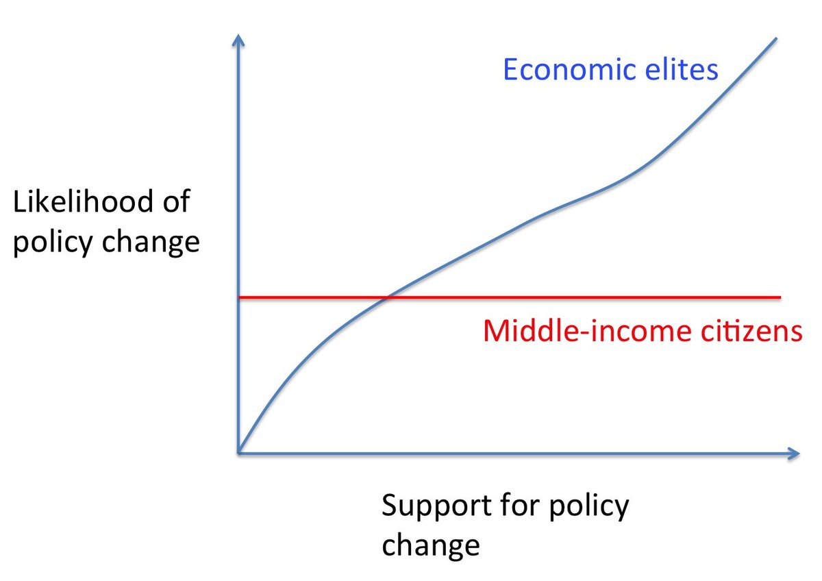 Despite the seemingly strong empirical support in previous studies for theories of majoritarian democracy, our analyses suggest that majorities of the American public actually have little influence over the policies our government adopts. Americans do enjoy many features central to democratic governance, such as regular elections, freedom of speech and association, and a wide-spread (if still contested) franchise. But we believe that if policymaking is dominated by powerful business organizations and a small number of affluent Americans, then Americas claims to being a democratic society are seriously threatened.