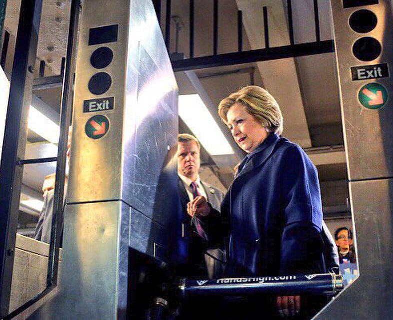 (1,163 posts)Did you catch Hillary trying to figure out a turnstile?