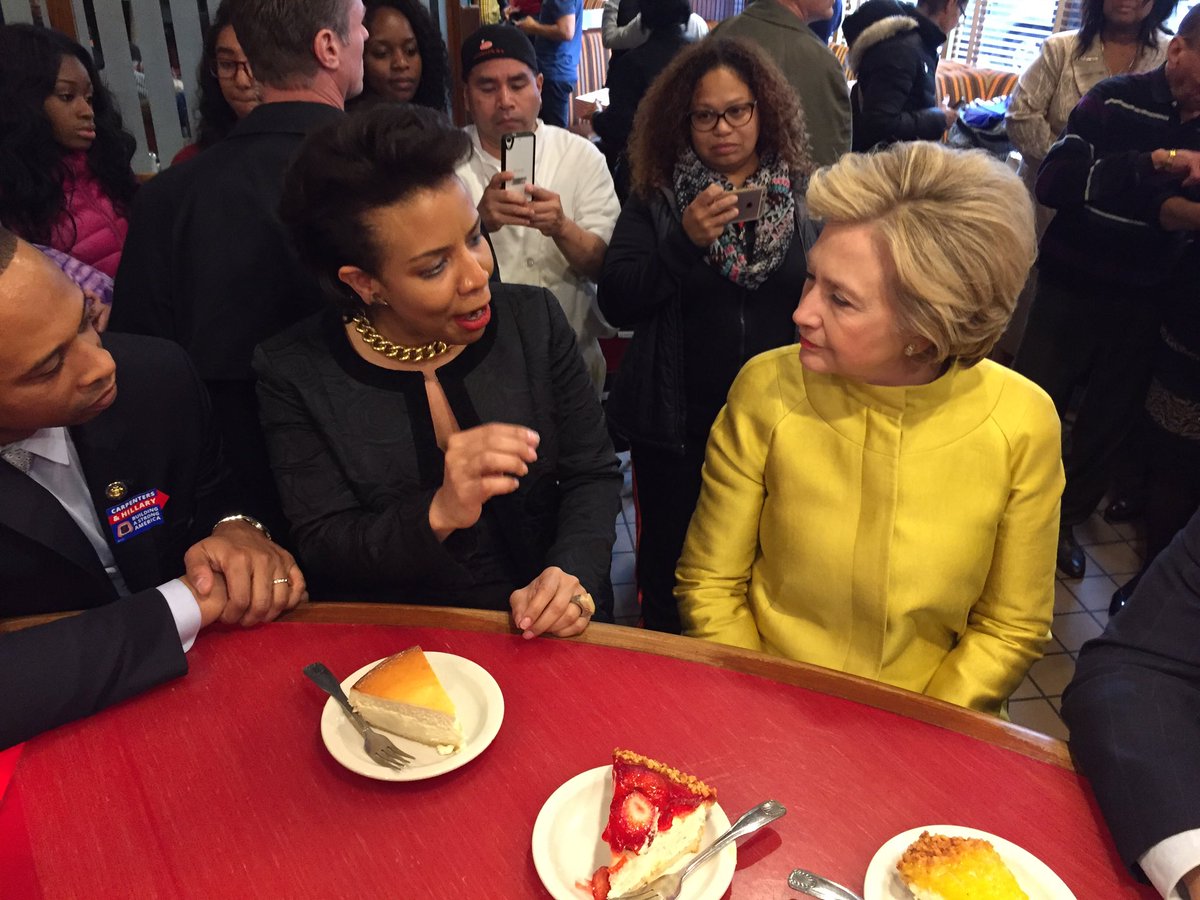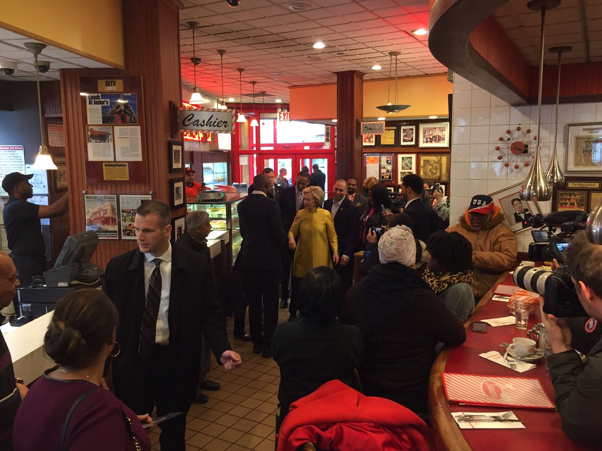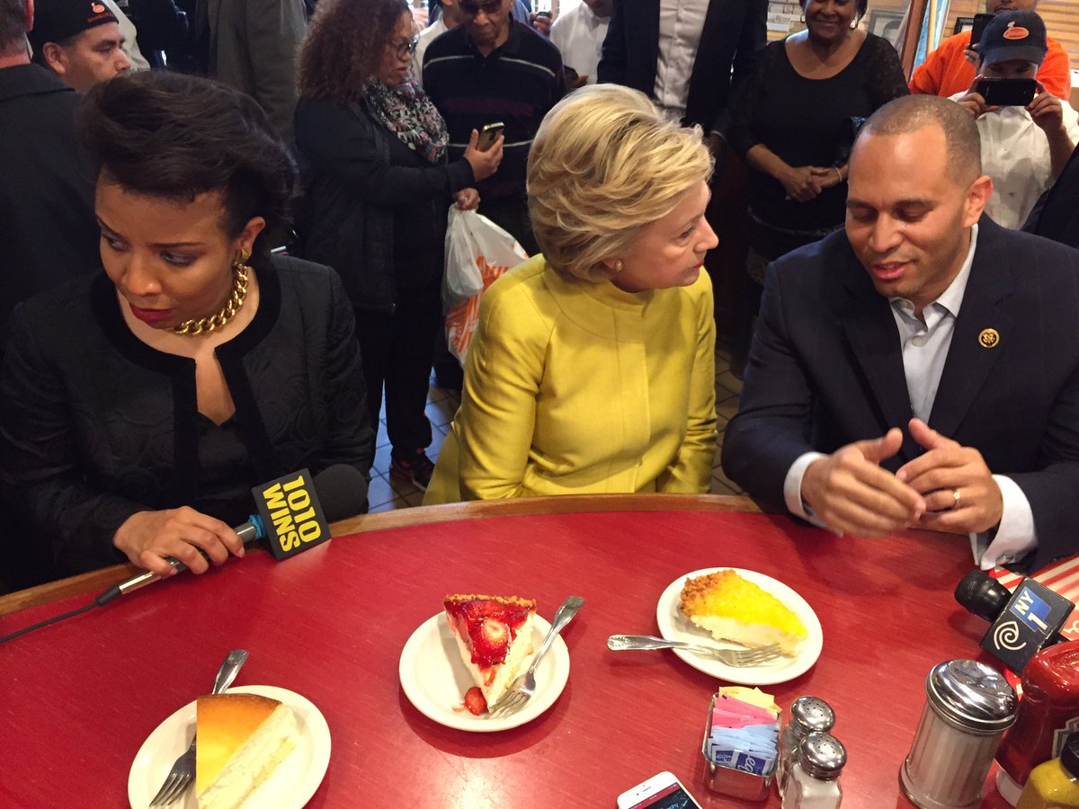 Hillary Clinton orders cheesecake at Junior's in Brooklyn.