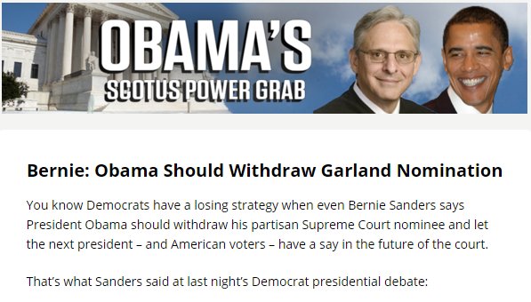 The Briefing @TheBriefing2016Republicans are using Bernie Sanders' #DemDebate answer on Merrick Garland against @POTUS. http://bit.ly/1qLRV3M
