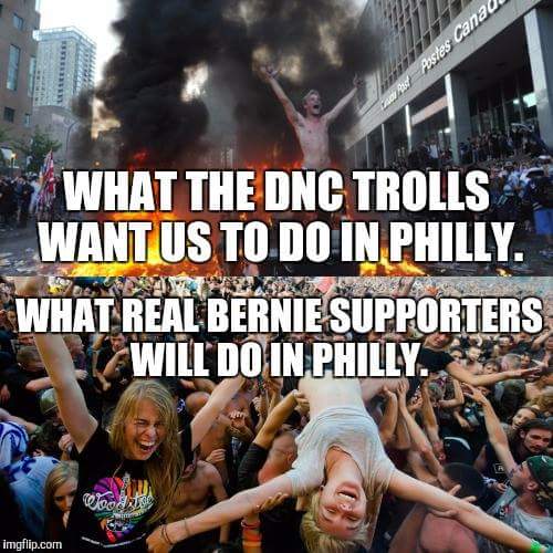 As for Hillary supporters, we need to stay far away from Philadelphia (except those delegates that need to be inside the convention), maintain the high road, and let the Sandriods hang themselves. Can't wait!!!