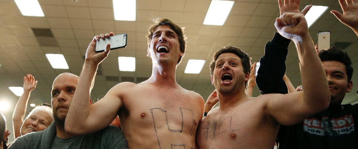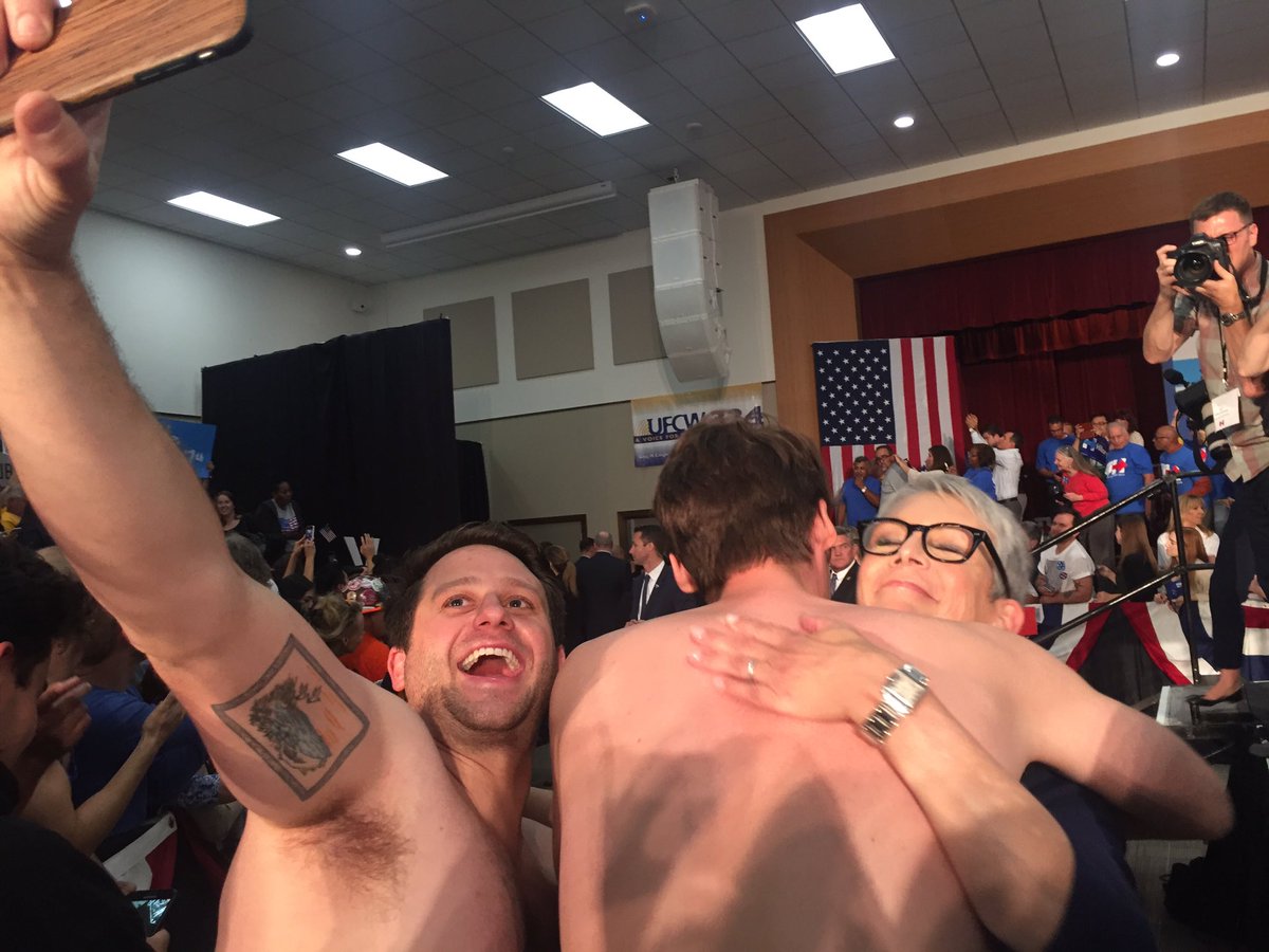 Meet the shirtless men who stood front row at a Hillary Clinton rally: