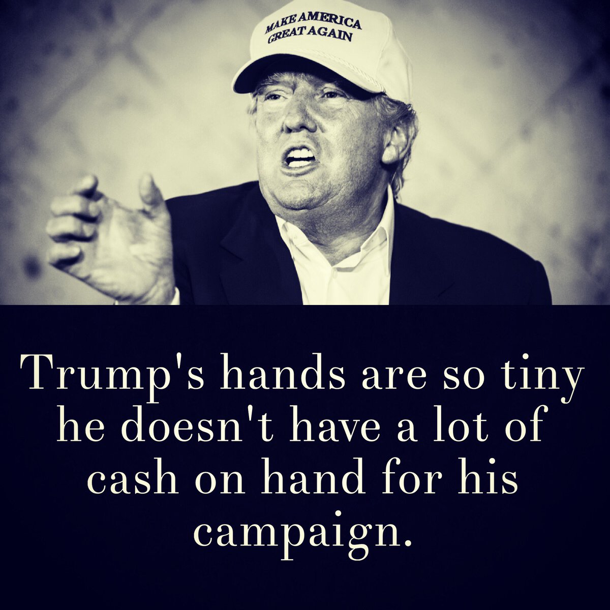 #TrumpSoPoor he only has a little over $1M on hand, but to be fair, that's just about all those stubby little sausages of his can carry.