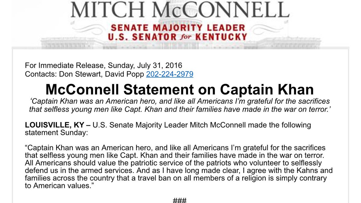 looks like Mitch completely ignored Khan's call for Ryan and McConnell to repudiate Trump.