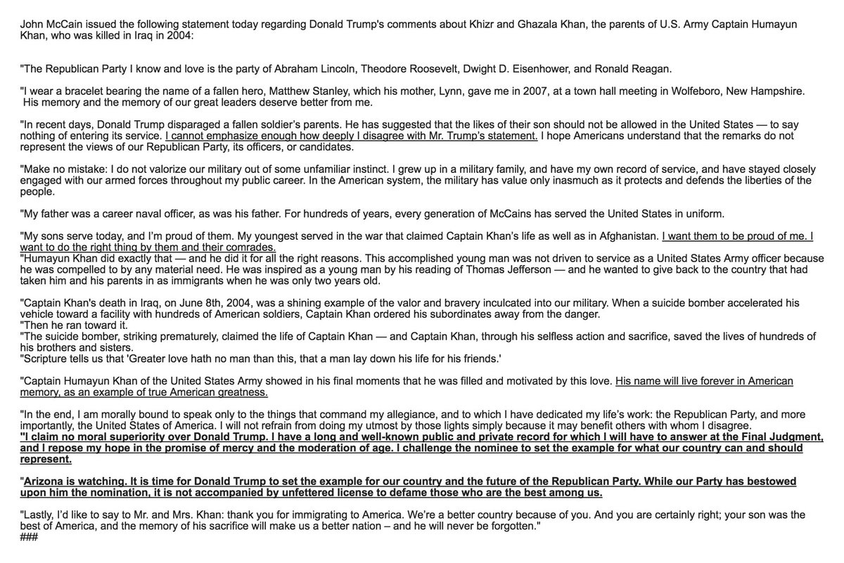 (176,683 posts)8. Great statement by Sen. McCain