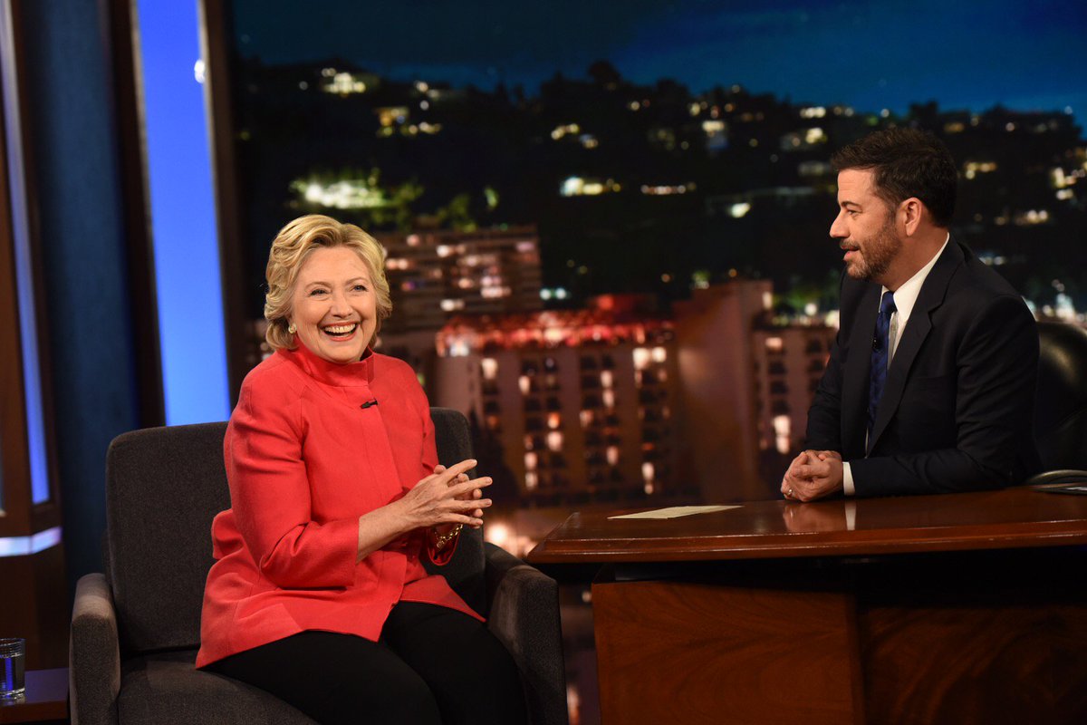 (80,047 posts)1. Clinton joked about her health on @JimmyKimmelLive & asked him to take her pulse "to make sure I'm a