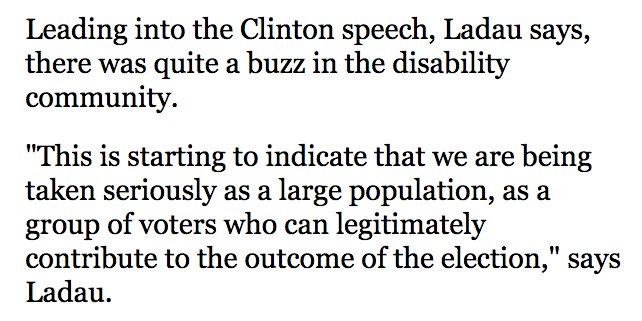 (94,442 posts)@NPR: Clinton Puts Focus On 56 Million 'Invisible' Disabled Voters