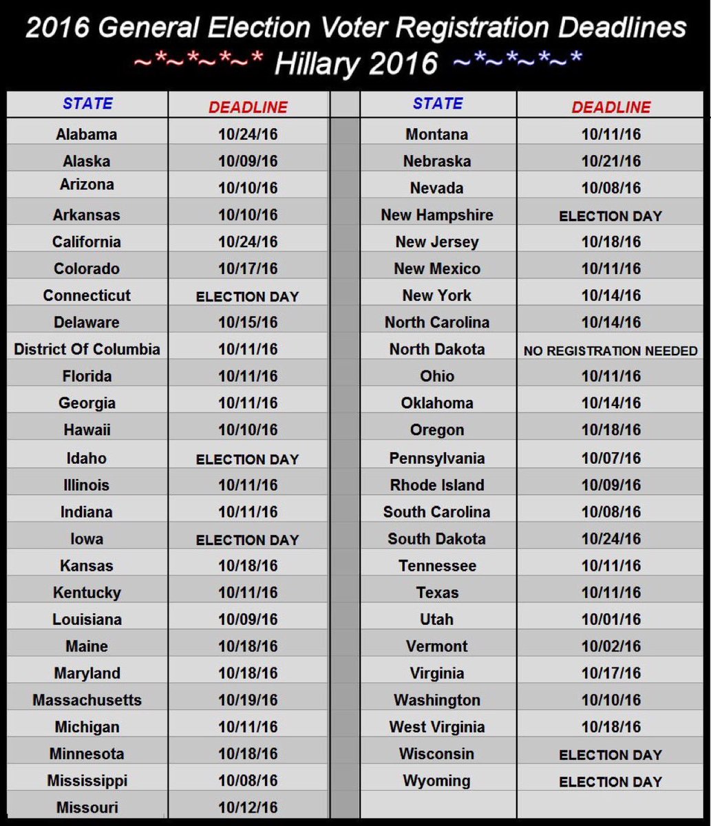 (23,335 posts)3. Deadline Alert: 10/11/2016 is the last day to register before the 11/08/2016 election. (PA)