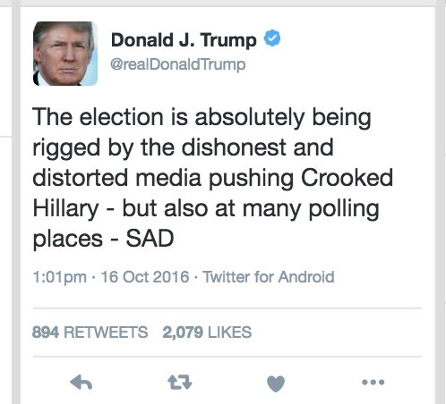 trump is undermining Democracy.. going full on birther.. now it's #rigging 'cause he's such a gd loser.