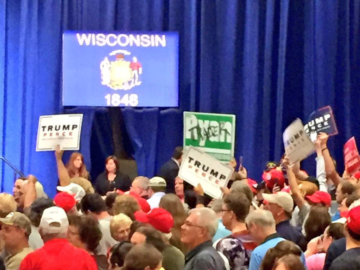 Trump supporter holding up a Ryan "TRADER" sign. I think he means "traitor." Unless speaker has part time job we don't know about.