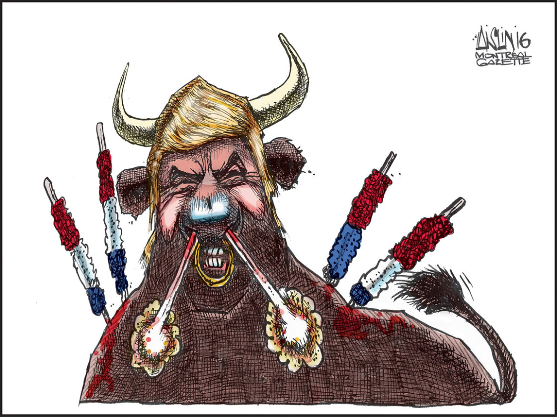 I saw one once on DU in a carnival-type style where Trump was a mechanical barker on a stage