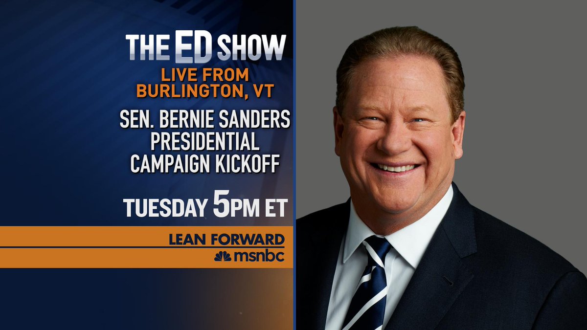 MSNBC "The Ed Show" Live at the Sanders presidential Campaign HQ Opening, 5 PM ET, Tues. May 26, '15