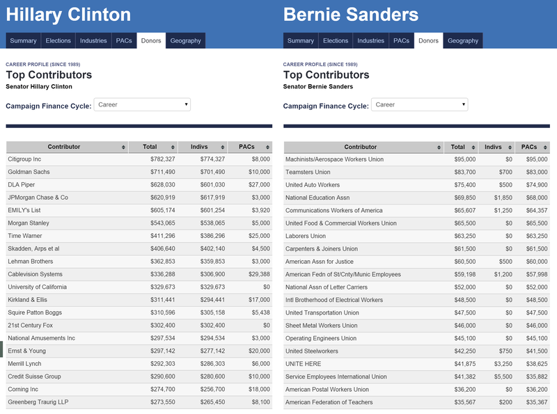 The people supporting Hillary are the rich and the people supporting Bernie are middle class workers.l