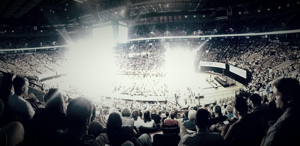 (8,175 posts)The crowd packed the basketball arena with a capacity of up to 19,000 as thousands more couldn't get inside and listened in on loudspeakers. A Moda Center official, Michael Lewellen, estimated the crowd at the free event totaled 28,000.