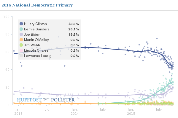 Sanders is not alone. Here are the most recent rankings from Predictwise http://www.predictwise.com/politics/2016DemNomination