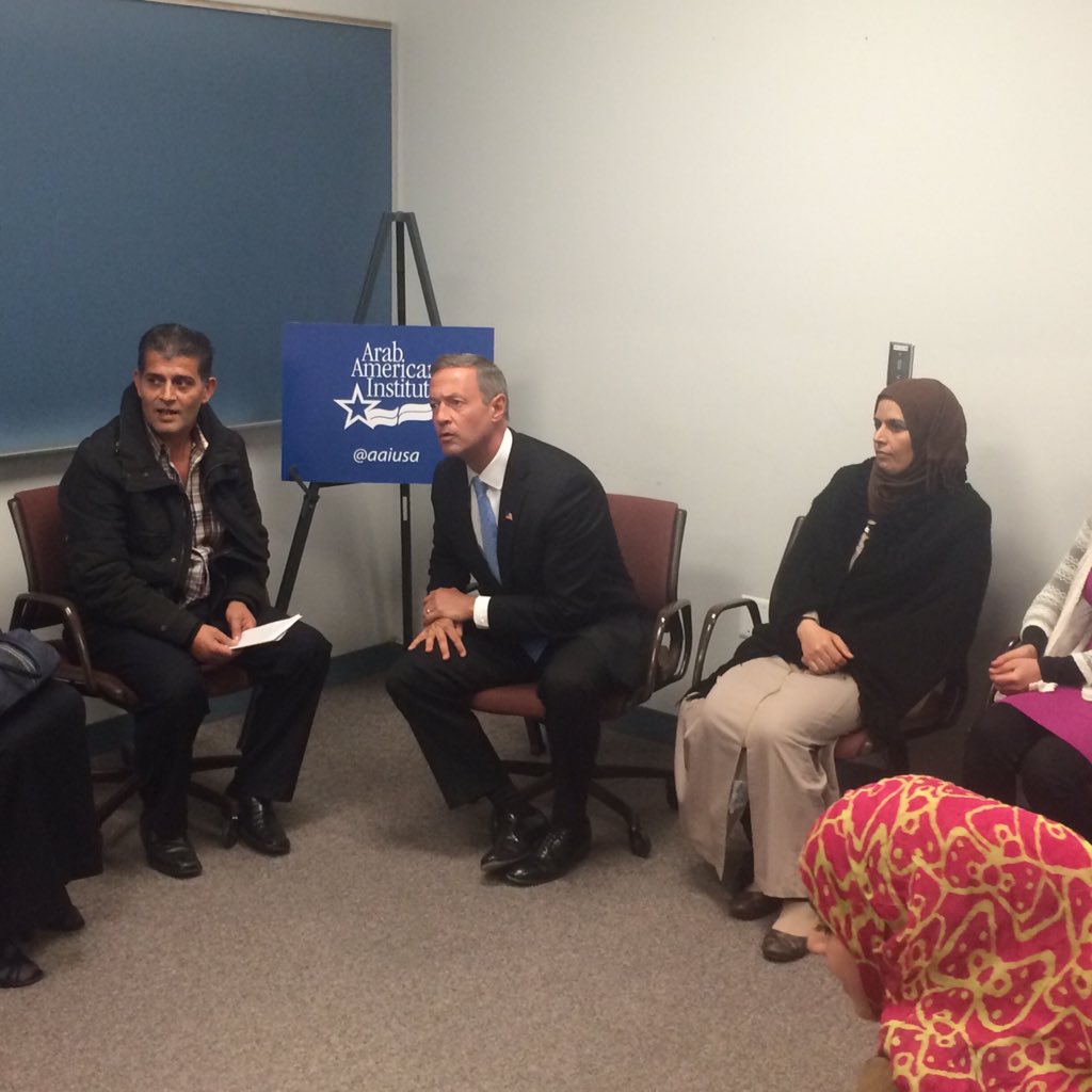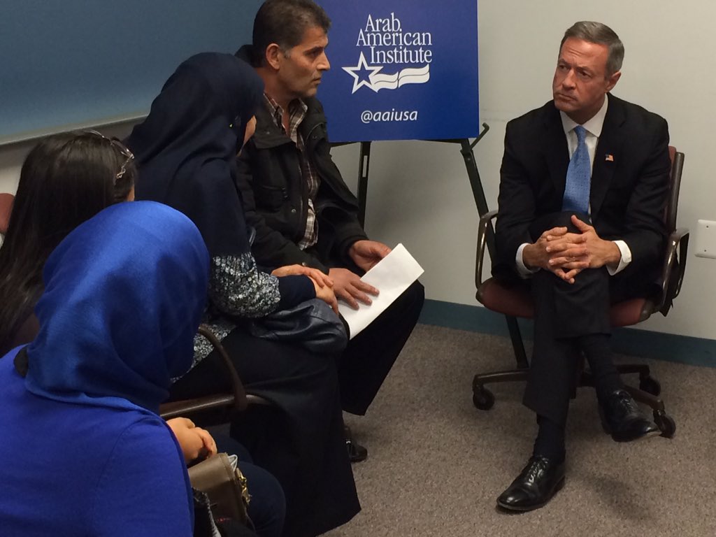 read article: http://www.freep.com/story/news/local/michigan/wayne/2015/10/23/arab-american-institute-martin-omalley-muslims-syrian-refugees/74482448/