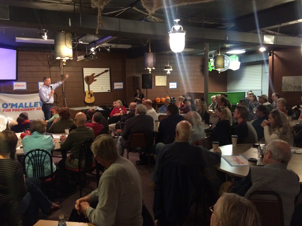 Packed house in Valley Junction to hear @MartinOMalley great fall Saturday morning for coffee and politics #iacaucus