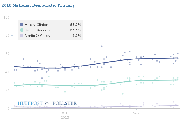 (449 posts)"According to the ABC News/Washington Post poll, Hillary Clinton has gone from leading Bernie Sanders 56%-22% in October to 59%-35% in November."