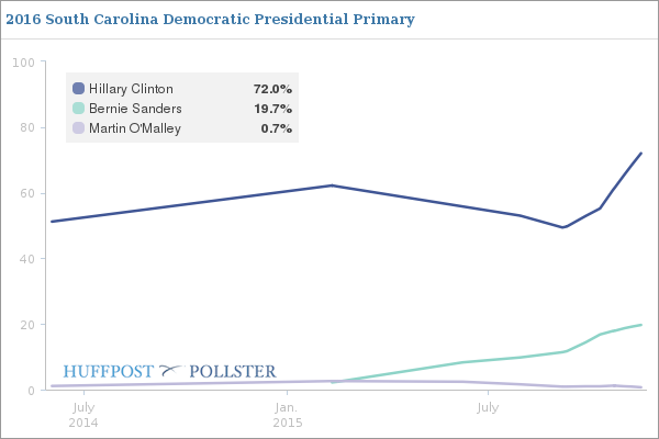 (2,101 posts)Sanders is in the low 30's and Clinton is in the mid 50's. it's been that way for weeks. Undecideds are shrinking fast.