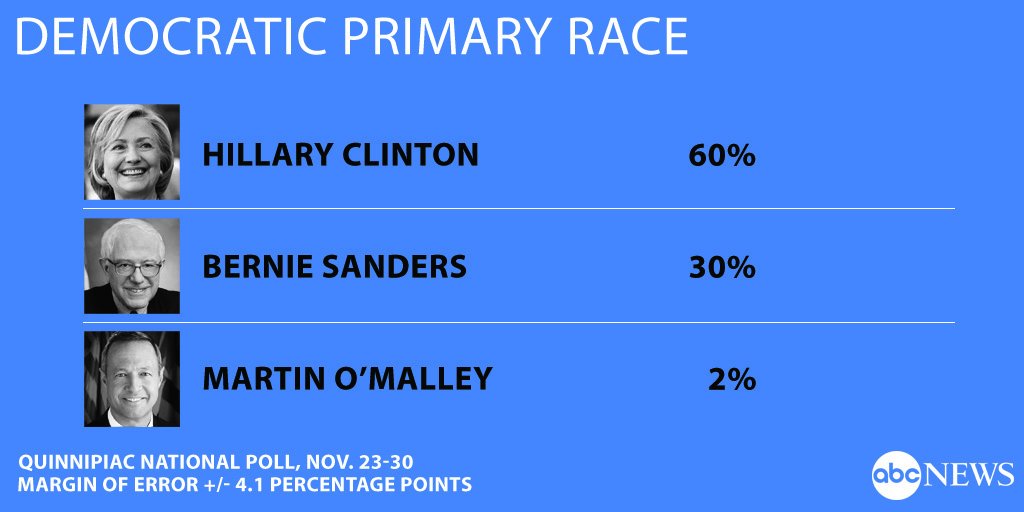 Hillary Clinton holding a strong 30% lead over Bernie Sanders.