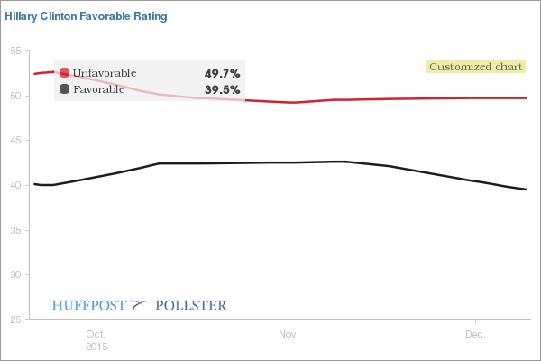 (60,968 posts)it is interesting that you ignore the change in the unfavorable numbers of Clinton and Sanders -- just by eyeballing the graphs, it is obvious that her unfavorables have been near constant since mid October, his seem to be rising at slightly higher rate than his favorables -- while the gap is positive for the entire period, it is shrinking. This means for both Democrats, the metric of looking at the difference between Favorable and unfavorable is getting gradually worse.