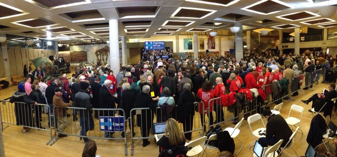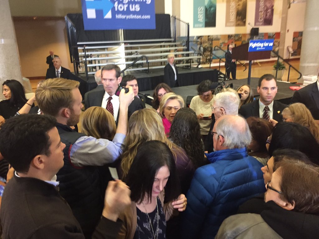 Hillary works the rope line following her rally in Des Moines #IACaucus