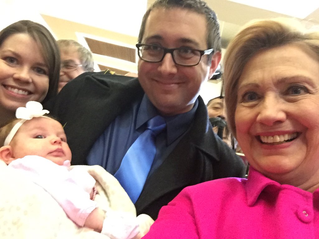 .@HillaryClinton meets Baby Starting Line & gets a selfie with family #IACaucus