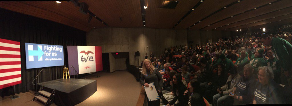 Absolutely packed house in Amespeople are standing along the edges and in the aisles to see Hillary! #ImWithHer