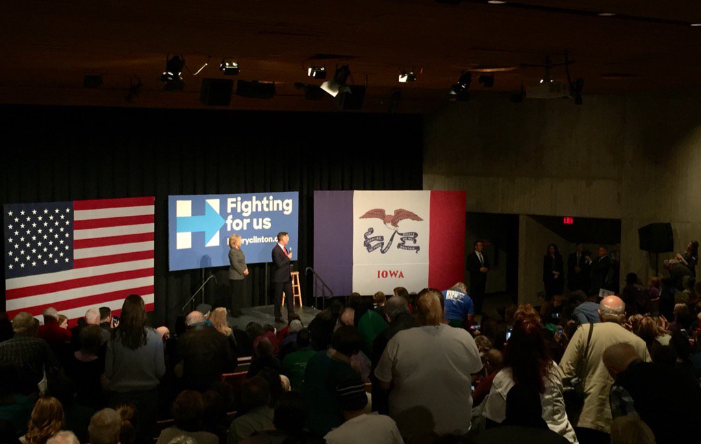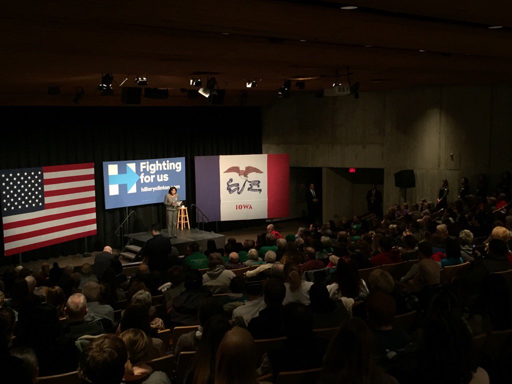 A standing ovation here in Ames as Hillary and Brady Campaign President Dan Gross take the stage. #ImWithHer