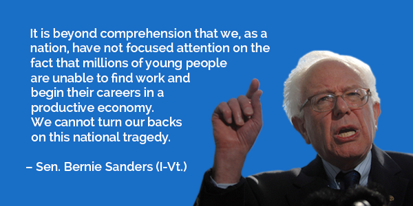 Young folks can't find jobs, even with college degrees, and too many older ones are working not full time or for reduced wages due to loss of a good job that was not their fault. Too many people have been caught up in the RW drug war and for things that shouldn't even be illegal, now can't get a job. Too many people are working 2-3 jobs just to survive. America is broke and needs fixing. think Bernie could help us turn the corner.