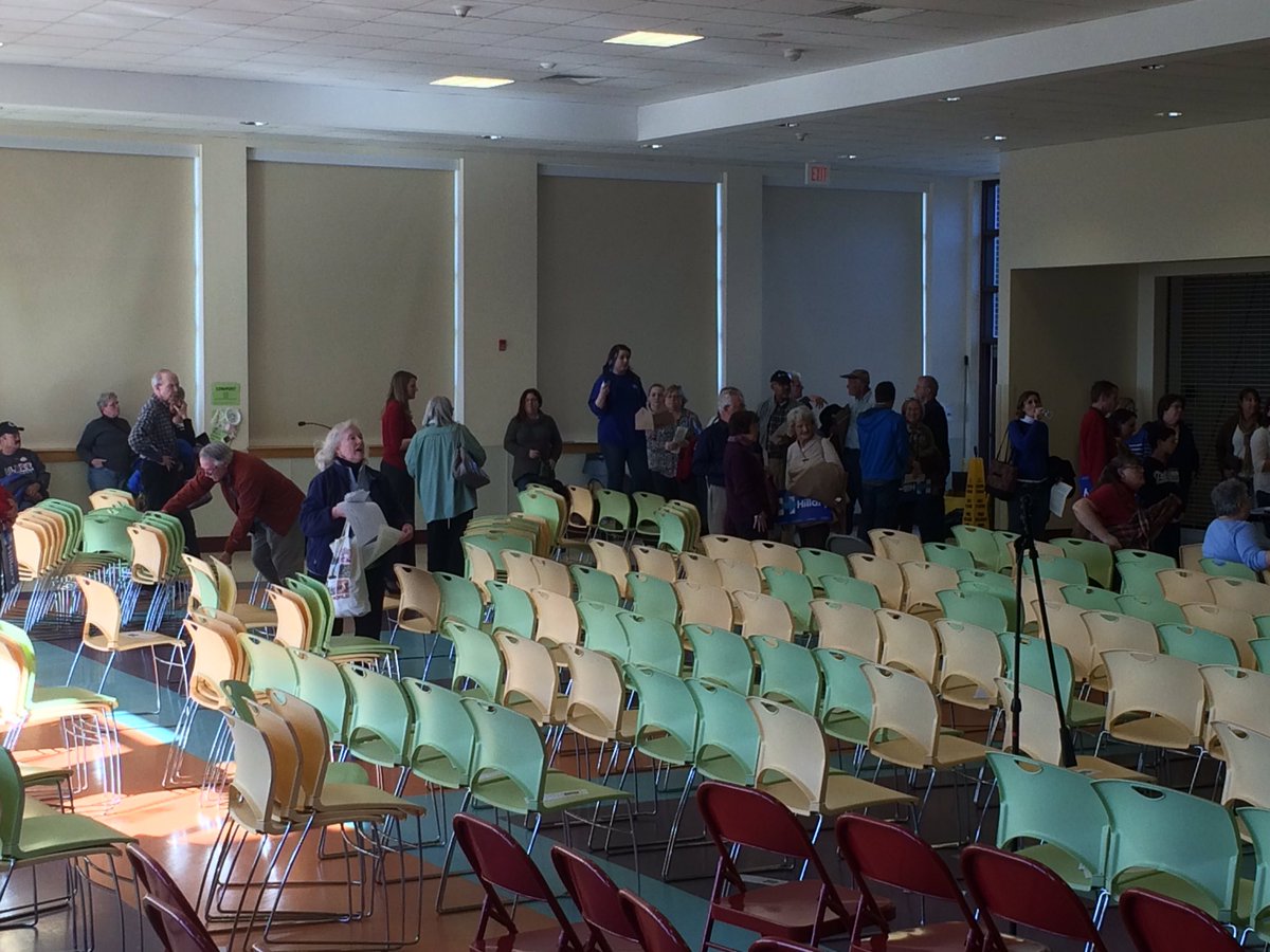 A look at those in support of @HillaryClinton in Scarborough. Some are on their way to the Bernie side. #MaineCaucus