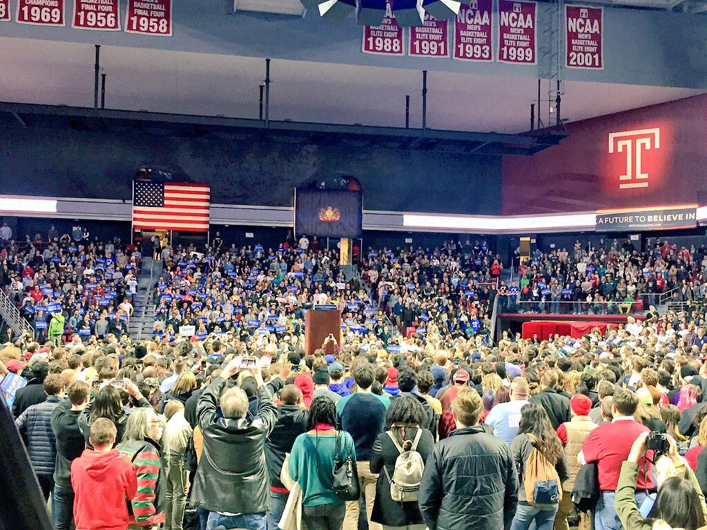 And for perspective here is @BernieSanders' ACTUAL rally space in Philadelphia. Filling to the top of the arena.