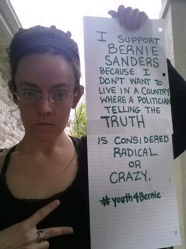 Oftentimes the old amateur photographer in me criticizes a photo, (I really need to stop doing this). One thing I would have done differently is added a bit more light to the girl's face. Then this thought occurred to me: Maybe it's a metaphor for all youth today being in a political shadow. It's not like pollsters are calling the youth of America on their cell phones and asking for their opinions. I have a sneaky hunch that this particular demographic is going to come out of the 'shadows' and we Sanders supporters are about to get some fairly substantial support! (If my memory is accurate, both Thom Hartmann and Senator Sanders has gone over College tuition relief on Brunch With Bernie at least once if not more).