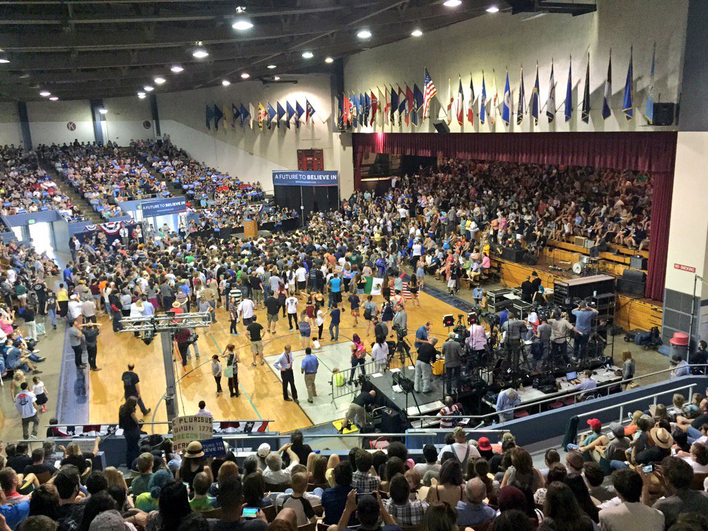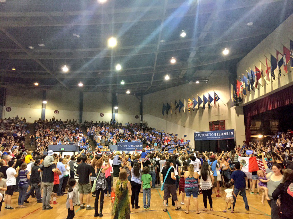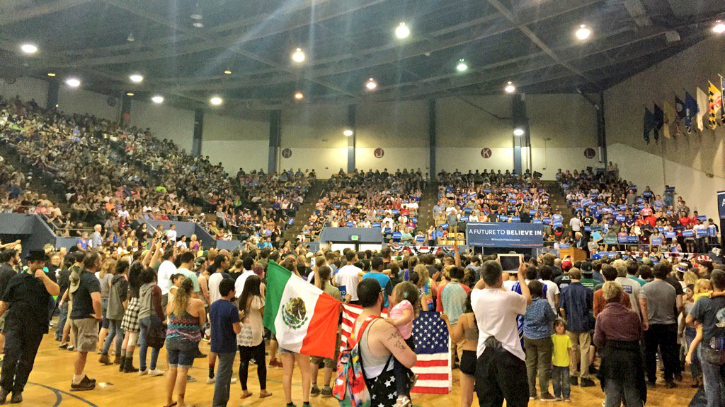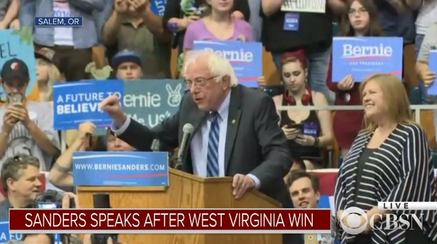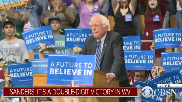 "Tonight it appears we've won a big big victory in West Virginia!" Says @BernieSanders to cheers in Salem, Oregon.