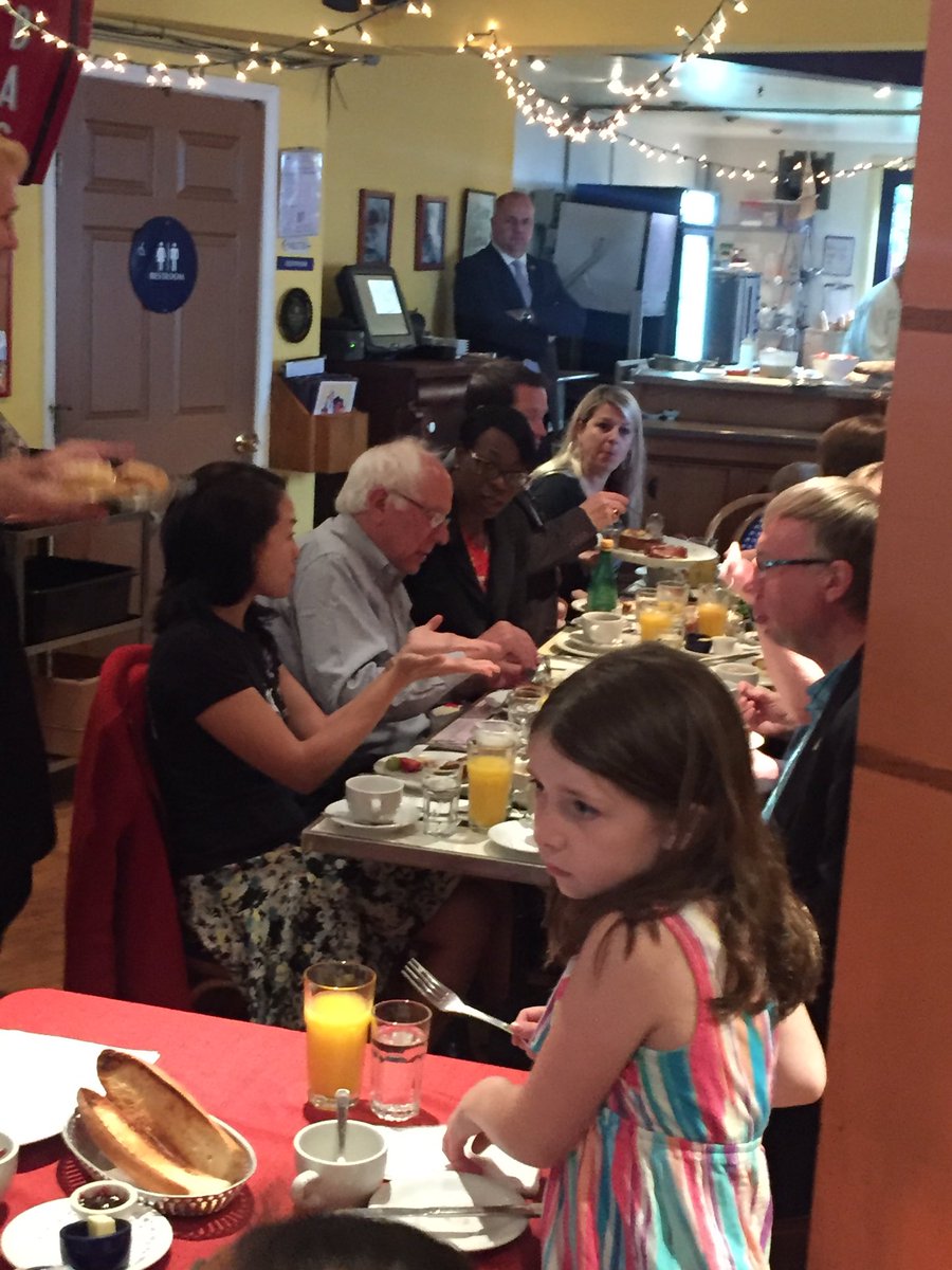 Bernie enjoying breakfast with his family, Jane Kim, and Nina Turner at The Butcher and the Chef (Original Post) Playinghardball Jun 2016 OP