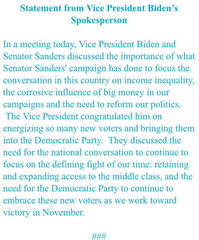 Statement from Vice President Biden's Spokesperson (Original Post) Donkees Jun 2016 OP