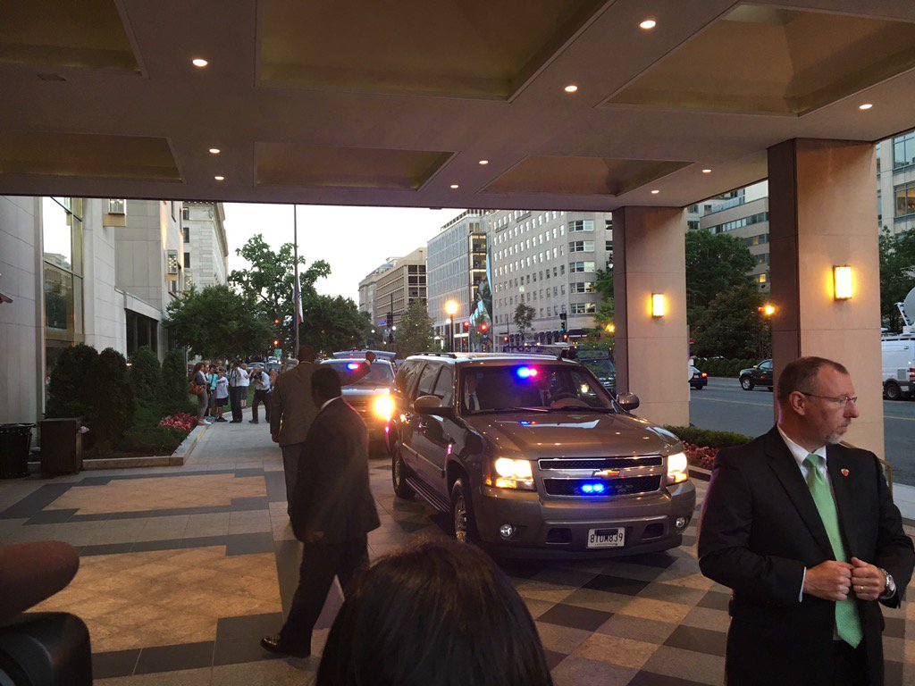 Hillary Clinton just arrived through the back alley at the Capital Hilton with John Podesta, Robby Mook and Huma Abedin in tow