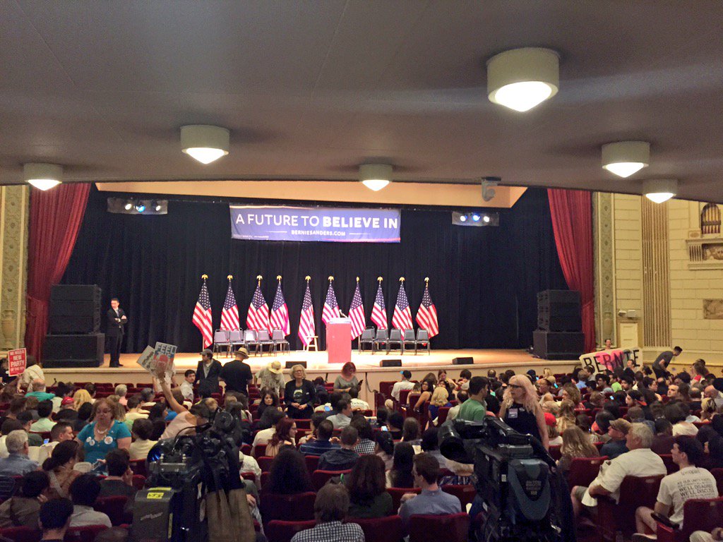 [font color="FireBrick"size="6"face="arial"]The scene for @BernieSanders' NYC rally tonight. Note the 20 empty chairs on stage. @ninaturner came out & waved.[/font]