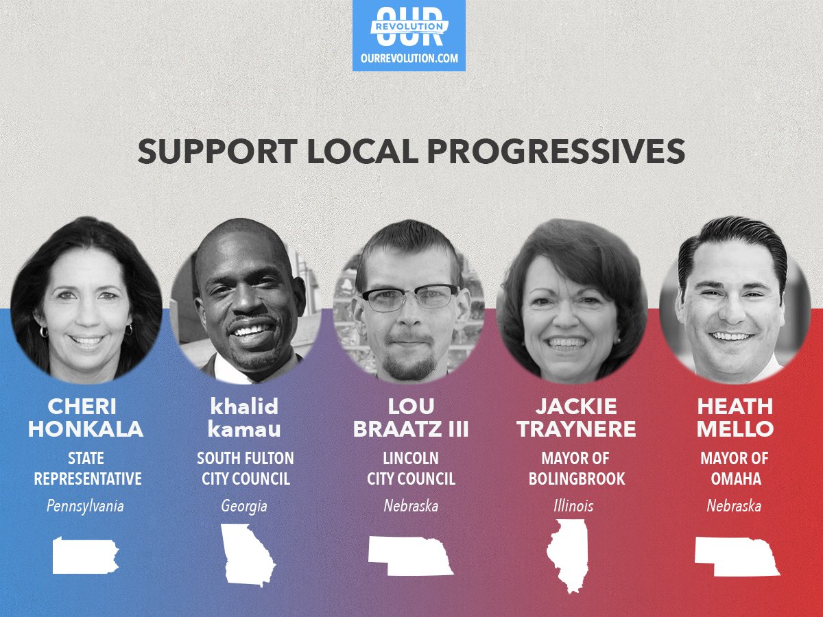 WASHINGTON -- Our Revolution on Thursday announced its support for five candidates running for positions in local and state legislatures across the country.