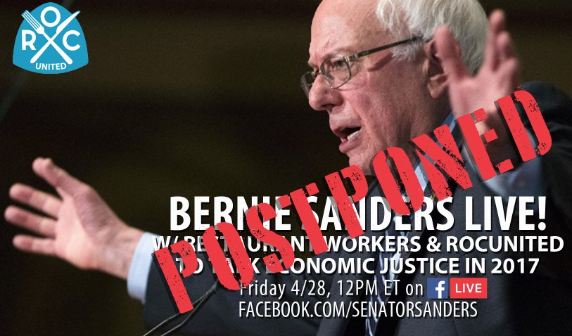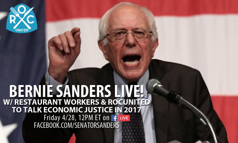 🐦 4/28 at 12PM ET - Bernie Facebook Live w/Restaurant Workers & Rocunited (Original Post) Donkees Apr 2017 OP