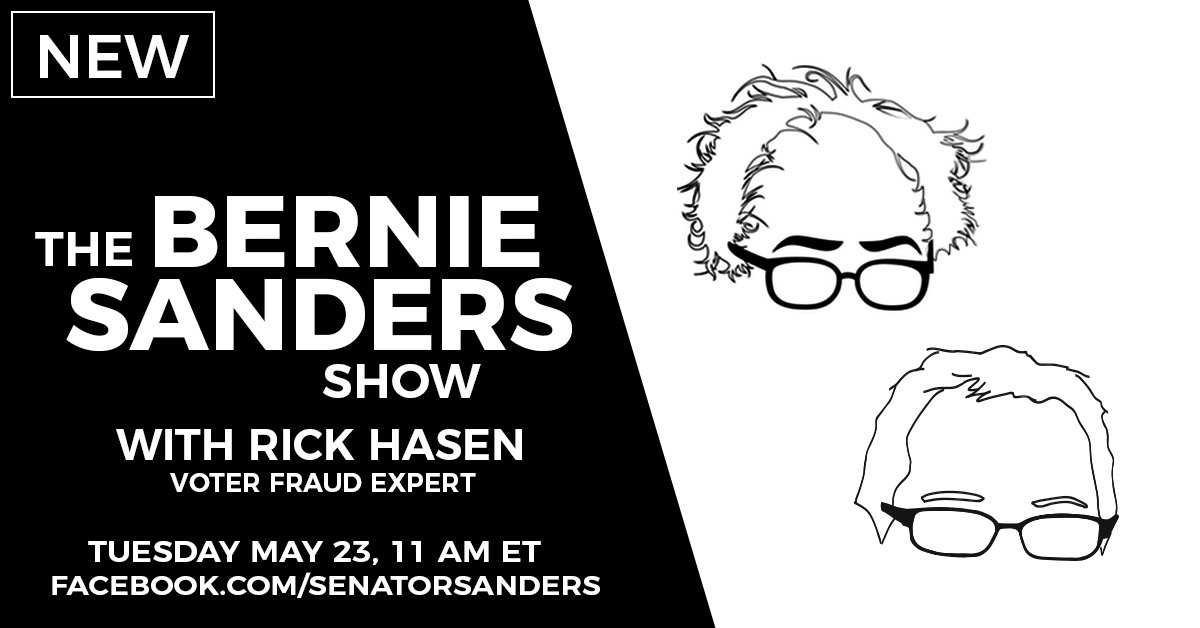 🐦 May 23 at 11AM ET - Bernie Sanders Show with Rick Hasen - Facebook Live