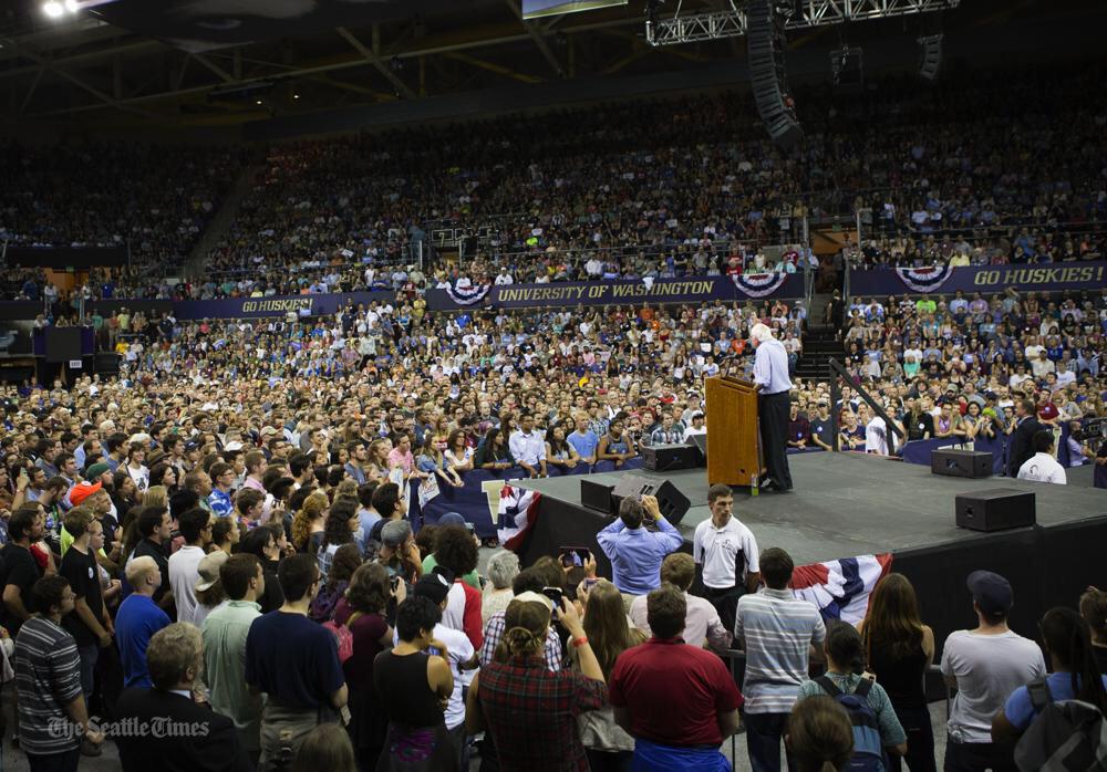 Seattle rally for @BernieSanders: "Tonight we tell the billionaire class, 'Enough is enough. You can't have it all.'"